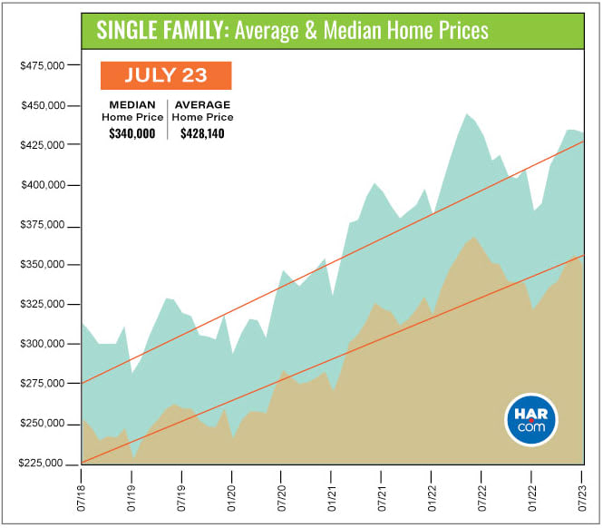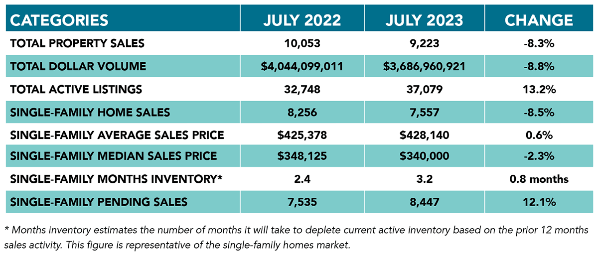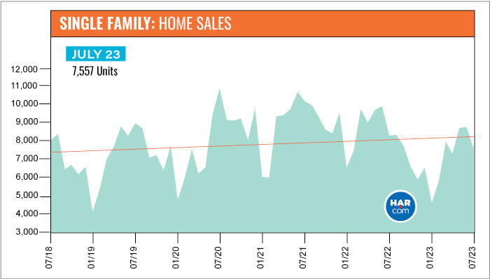 The latest data from July 2023 reveals that single-family home sales in Houston have decreased by 8.5% year-over-year, with 7,557 units sold.
